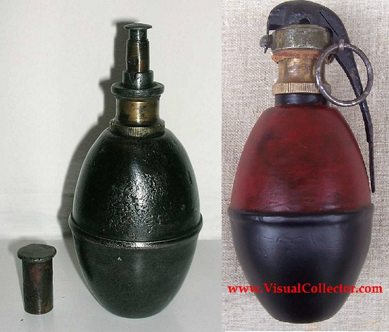 De forme quasi-identique à la grenade incendiaire et fumigène automatique Mle 1916, on la distingue facilement à la présence de la bague en laiton qui n'est jamais présente sur le modèle incendiaire.