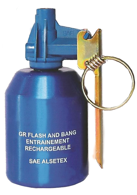 Cette grenade en plastique comprend une charge de 75 g de perchlorate d’aluminium qui produit une détonation de 156 dB à 10m. Son poids est de 125 g; sa taille est de 10 cm x 6.2 cm de diamètre. Sa forme reprend celle de la grenade d’exercice XF1.